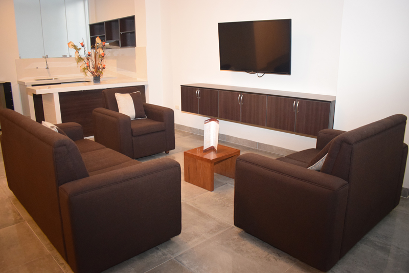 El área social cuenta con un pequeño estudio y un elegante hall para sus reuniones de negocios. Asimismo cuenta con un kitchener que lo harán sentir como si estuviera en casa.